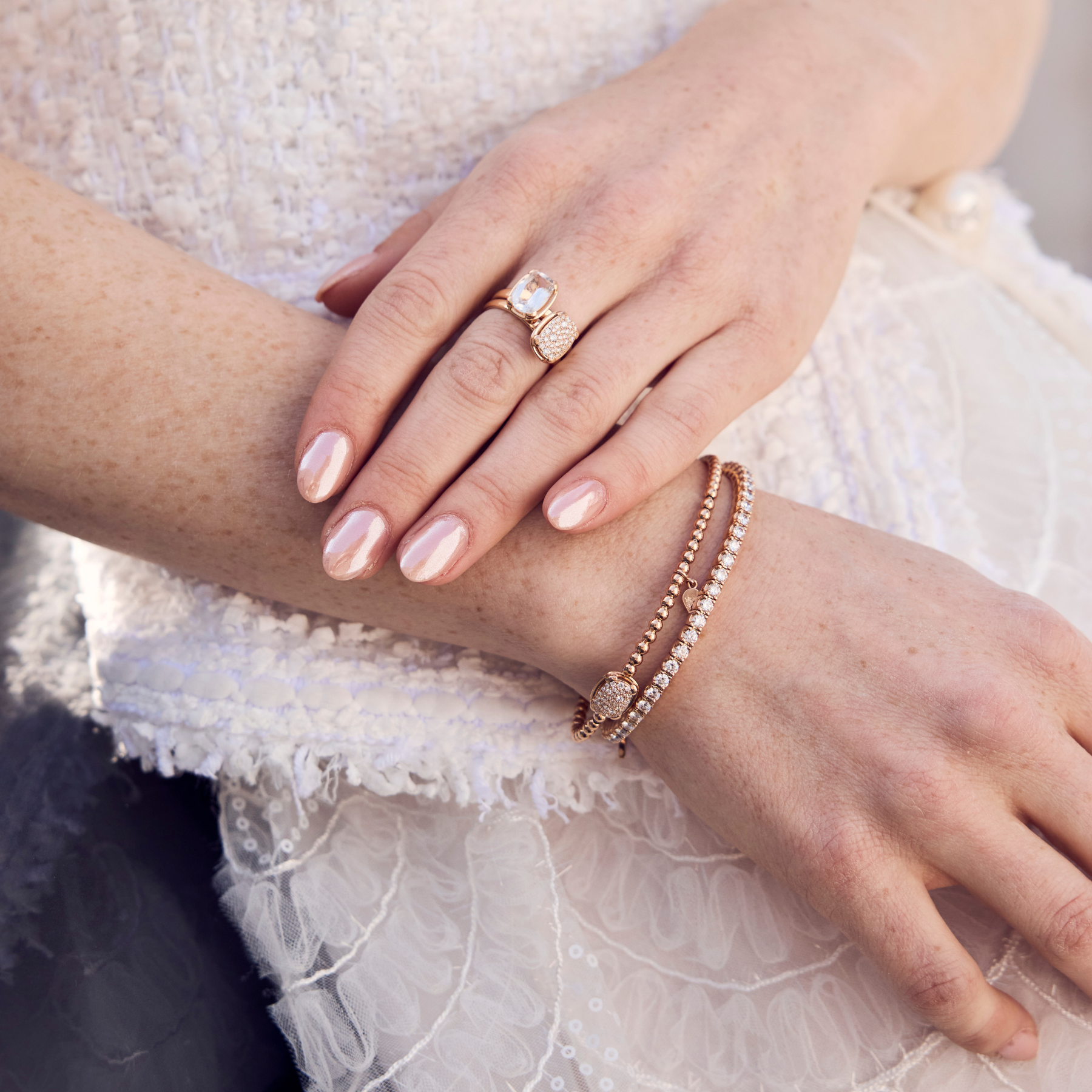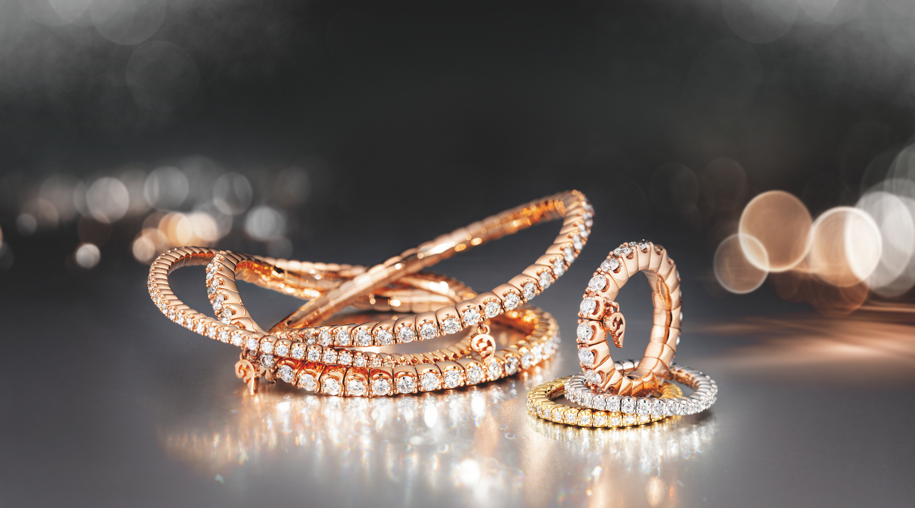 Zeitlos schön und wunderbar flexibel: unsere neuen flexiblen Armbänder und Ringe mit dem ikonischen Namen Grace. Man kennt das Bracelet mit den rundum gefassten Brillanten unter dem Namen Rivière oder Eternity-Band, vor allem aber als sogenanntes Tennisarmband. Die Geschichte dazu: Die Tennis-Legende Chris Evert verlor 1987 während eines Turniers ein solches Armband und ließ das Spiel deshalb abbrechen. Das Band wurde gefunden und war berühmt! Wir präsentieren Grace mit einer eigens entwickelten flexiblen Technik, die das An- und Ablegen zum reinsten Vergnügen macht. On Top: Unser kleiner Anhänger bürgt als Markensignet für beste Qualität. Erhältlich in Weiß-, Gelb- und Roségold