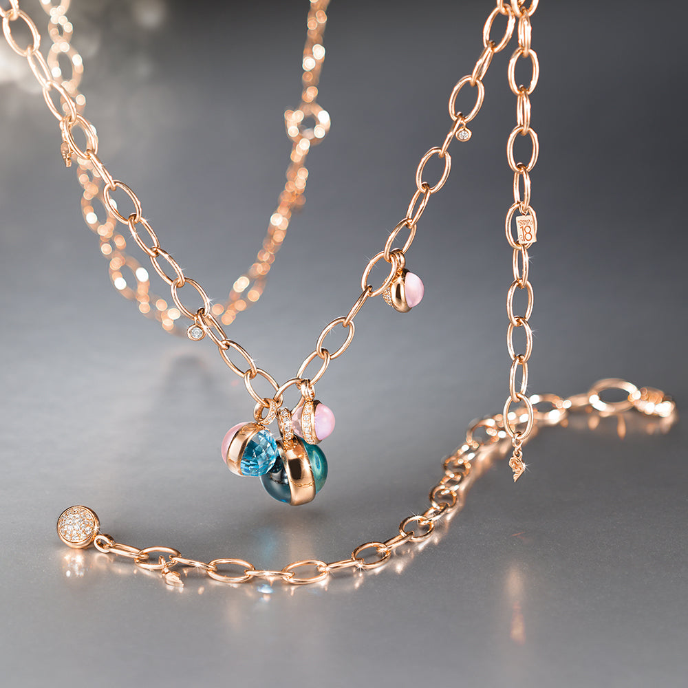 So schmeichelnd wie weicher Samt: die Linie Velluto huldigt dem Kreis und der Kugel, den Formen, die als Symbol für Vollkommenheit gelten. Die schlichten Ringe mit Farbsteinen im runden Cabochon-Schliff verführen in allen Lieblingsfarben. Highlights: das Velluto Collier und Armband mit funkelnden Diamanten.