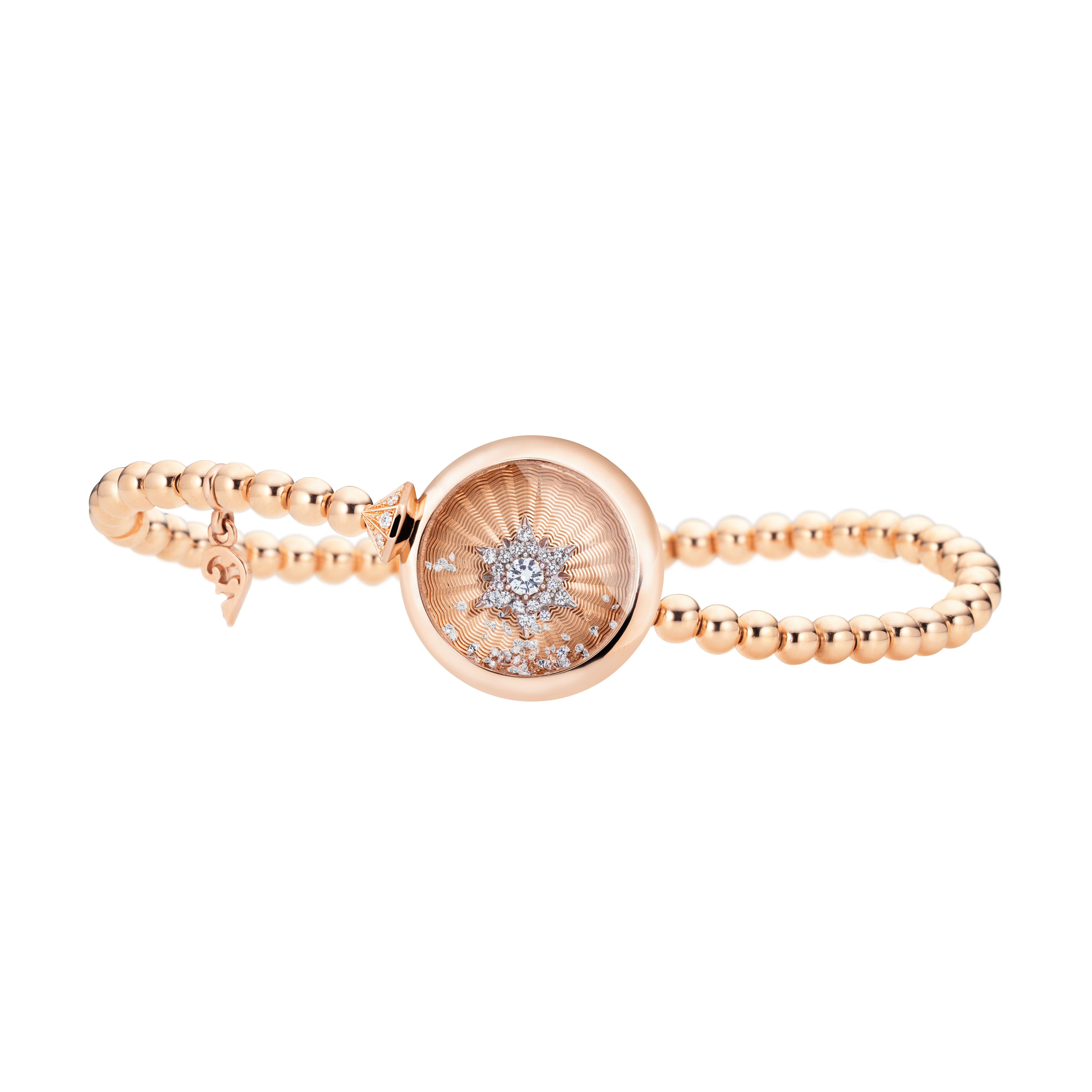The "Capriccio" bracelet from 'The Colour Collection' is a real highlight. Experienced goldsmiths carefully handcraft the bracelet using 18k rose gold . Highly skilled professionals carefully set 60 diamonds into the bracelet. With this range of jewellery, CAPOLAVORO covers a unique spectrum from street chic to haute couture. Original design copyrighted by CAPOLAVORO