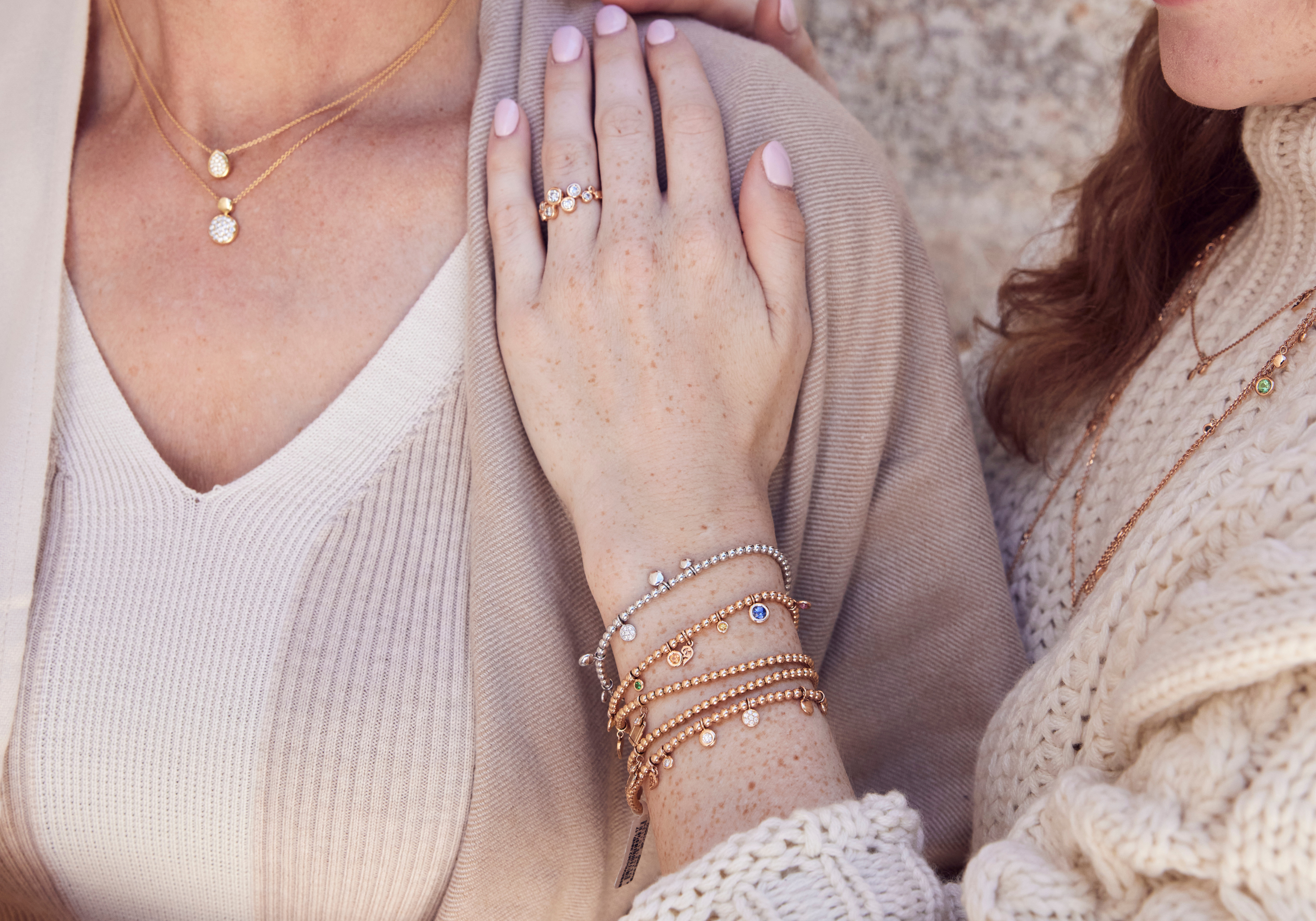 The flexible bracelets can dance solo or shine in a group, they are also the perfect add-on to your watch. Combine gold, colored stones, diamonds or personalized elements according to your favorite. The possibilities for flexible arm candy are endless.