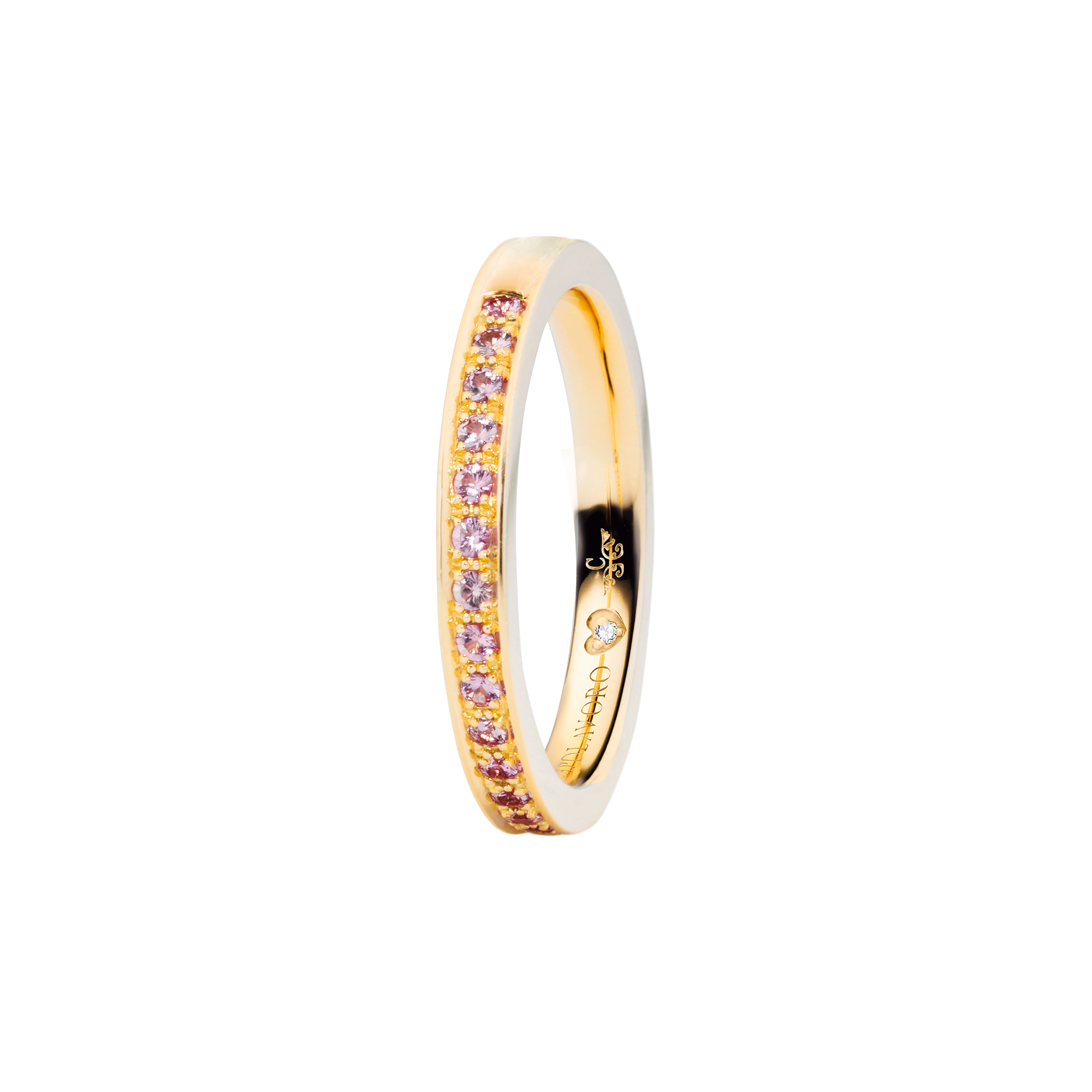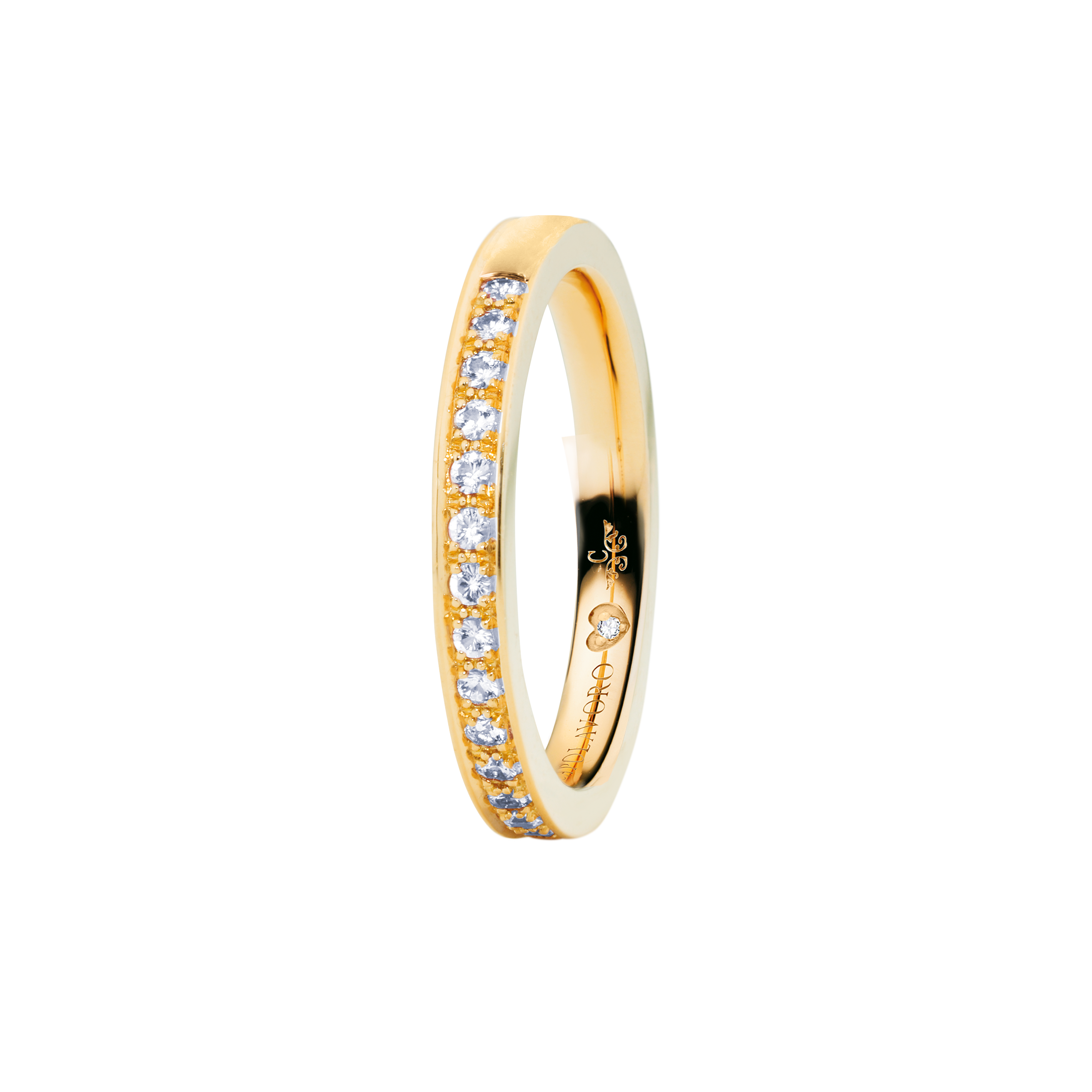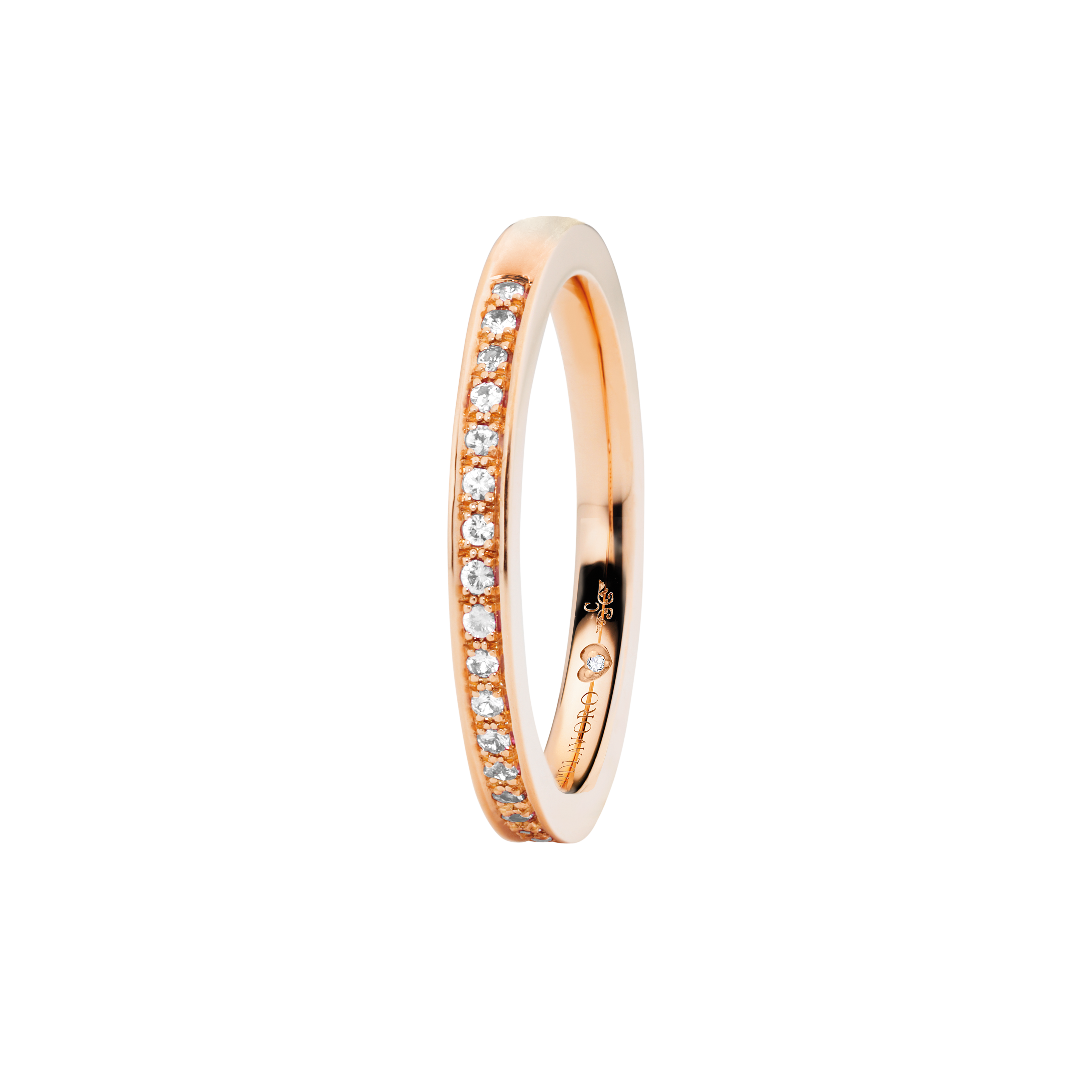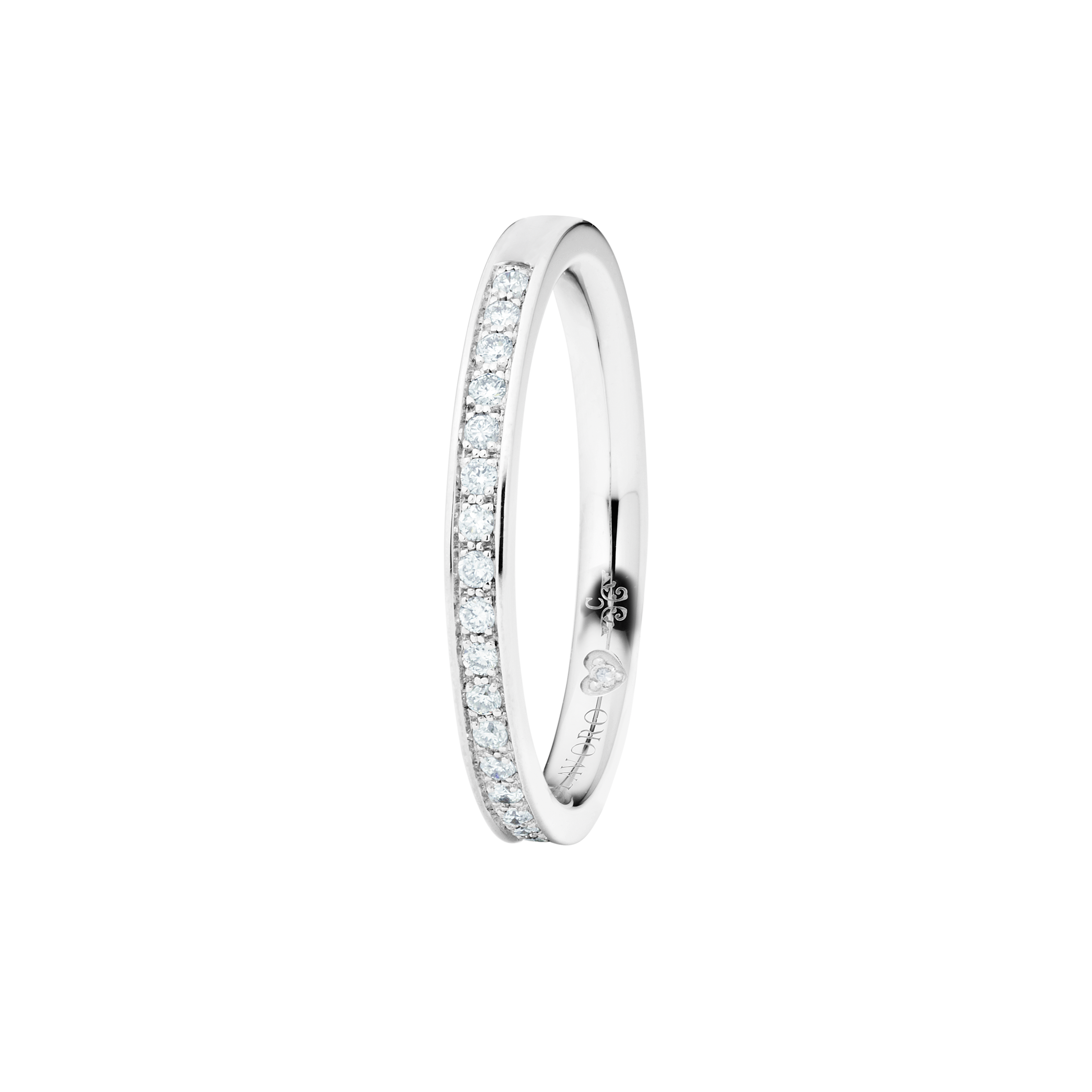 When designing the ring band of our rings from the Diamante in Amore line, we at CAPOLAVORO paid special attention to ensuring that these rings fit together harmoniously and seamlessly. This means you can combine your pieces of jewelry (e.g. wedding ring and eternity ring) as you wish and create a uniform and aesthetically pleasing ensemble.
