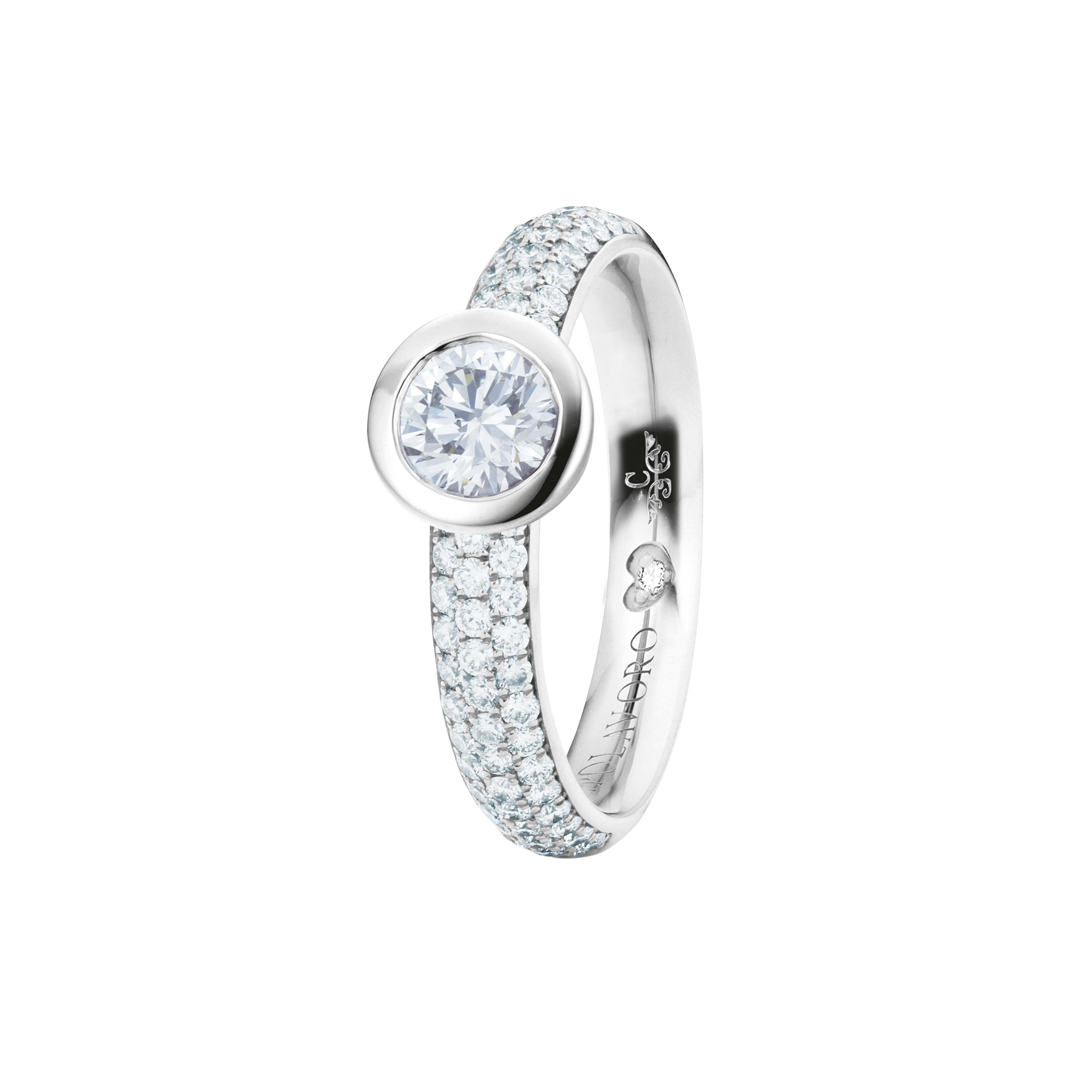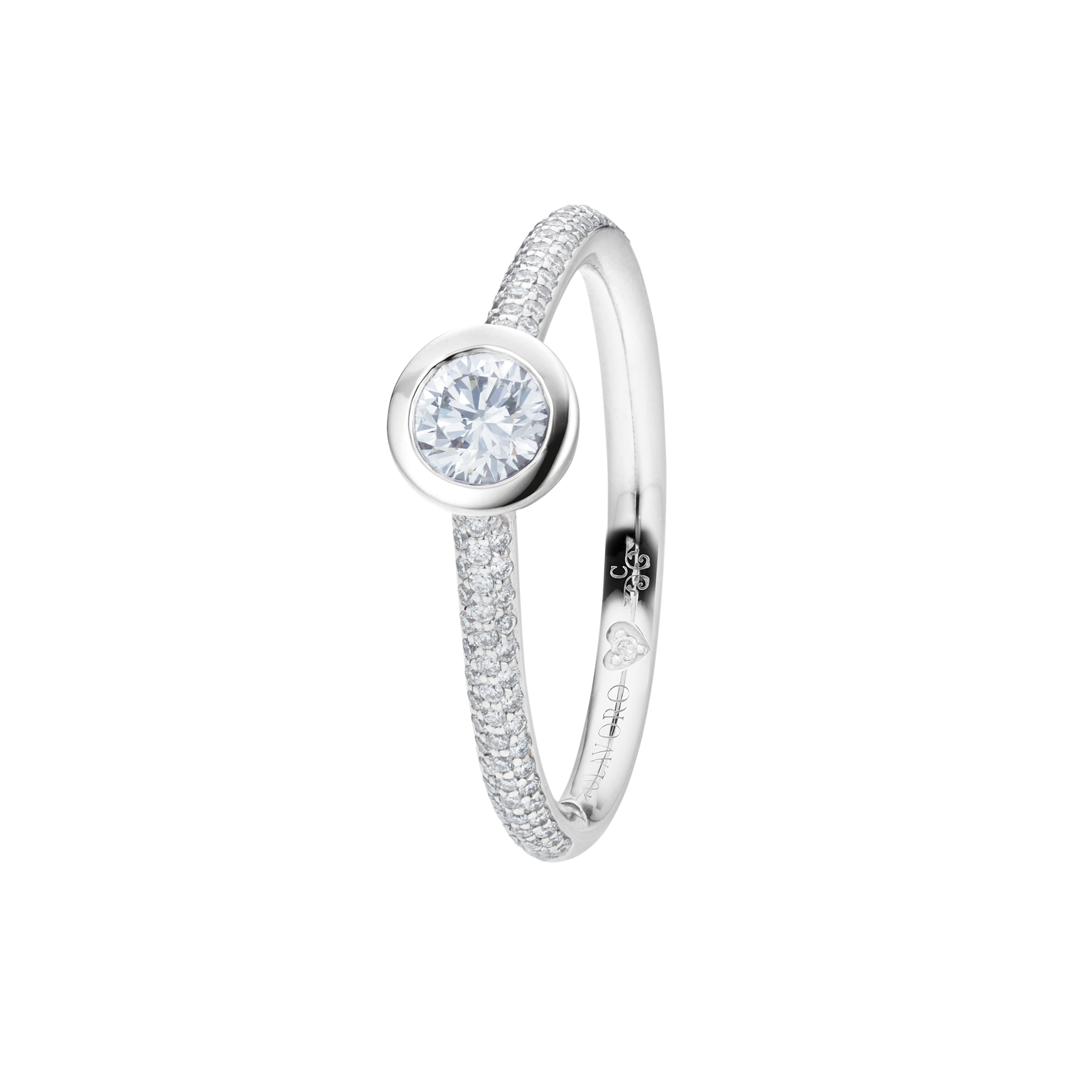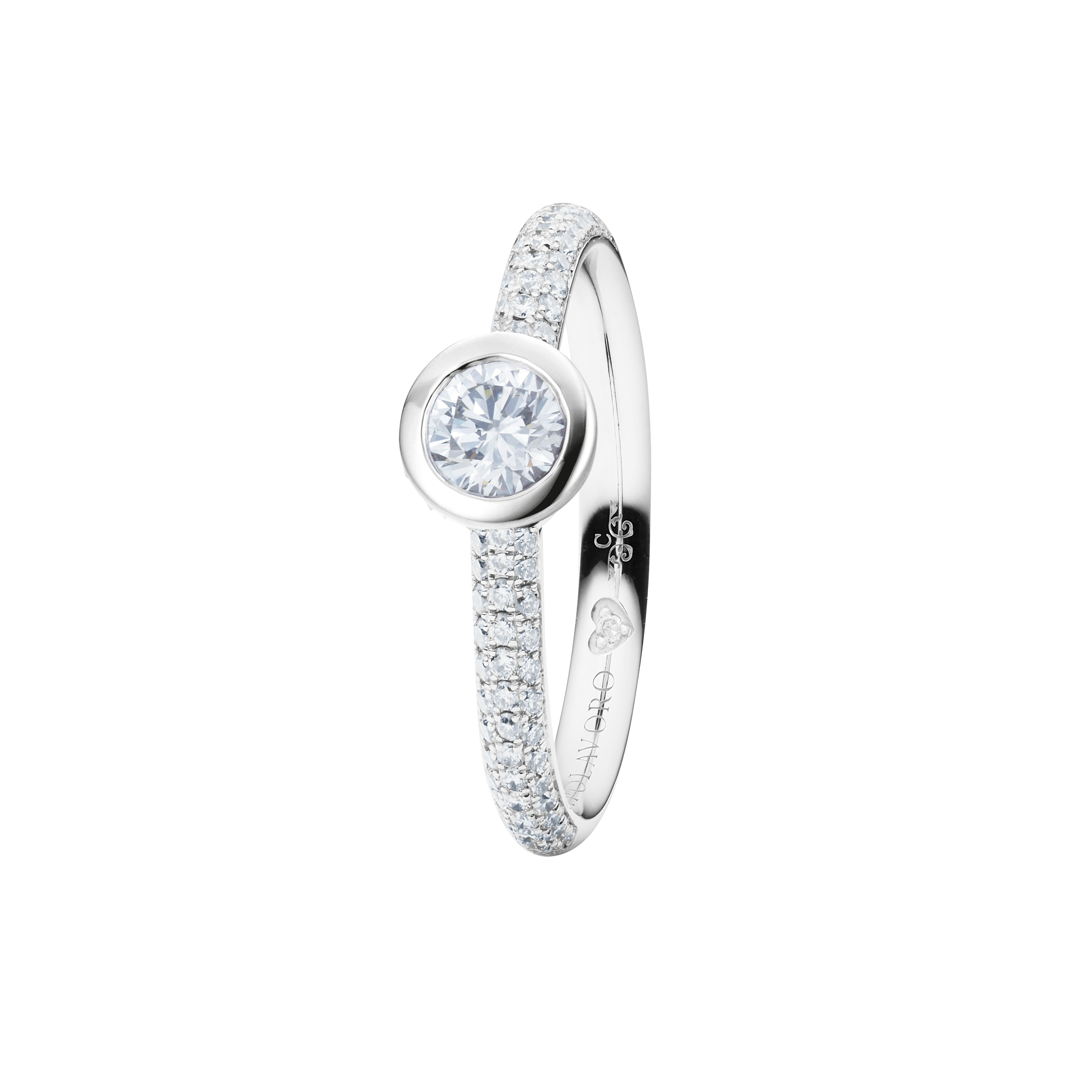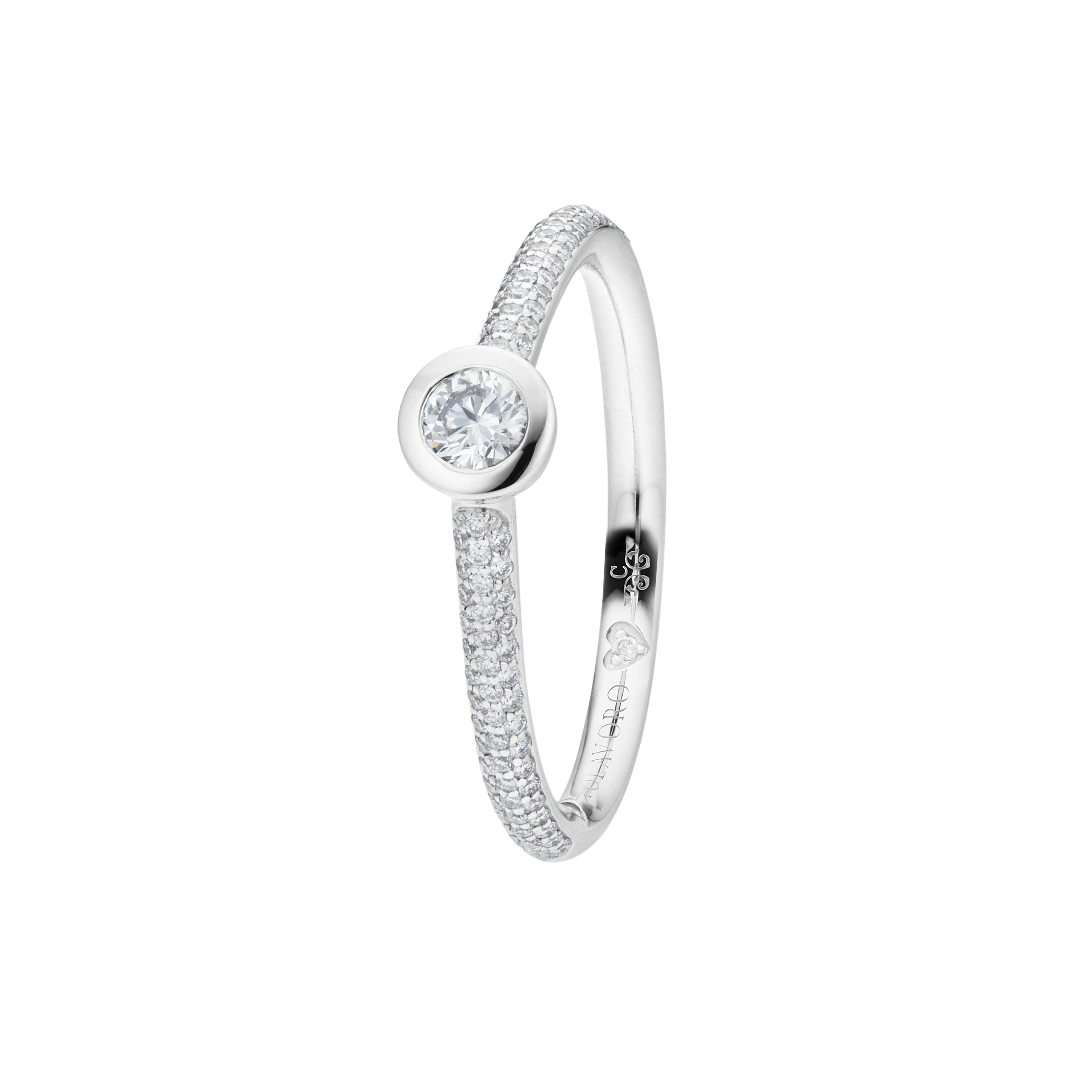 When designing the ring band of our rings from the Diamante in Amore line, we at CAPOLAVORO paid special attention to ensuring that these rings fit together harmoniously and seamlessly. This means you can combine your pieces of jewelry (e.g. wedding ring and eternity ring) as you wish and create a uniform and aesthetically pleasing ensemble.