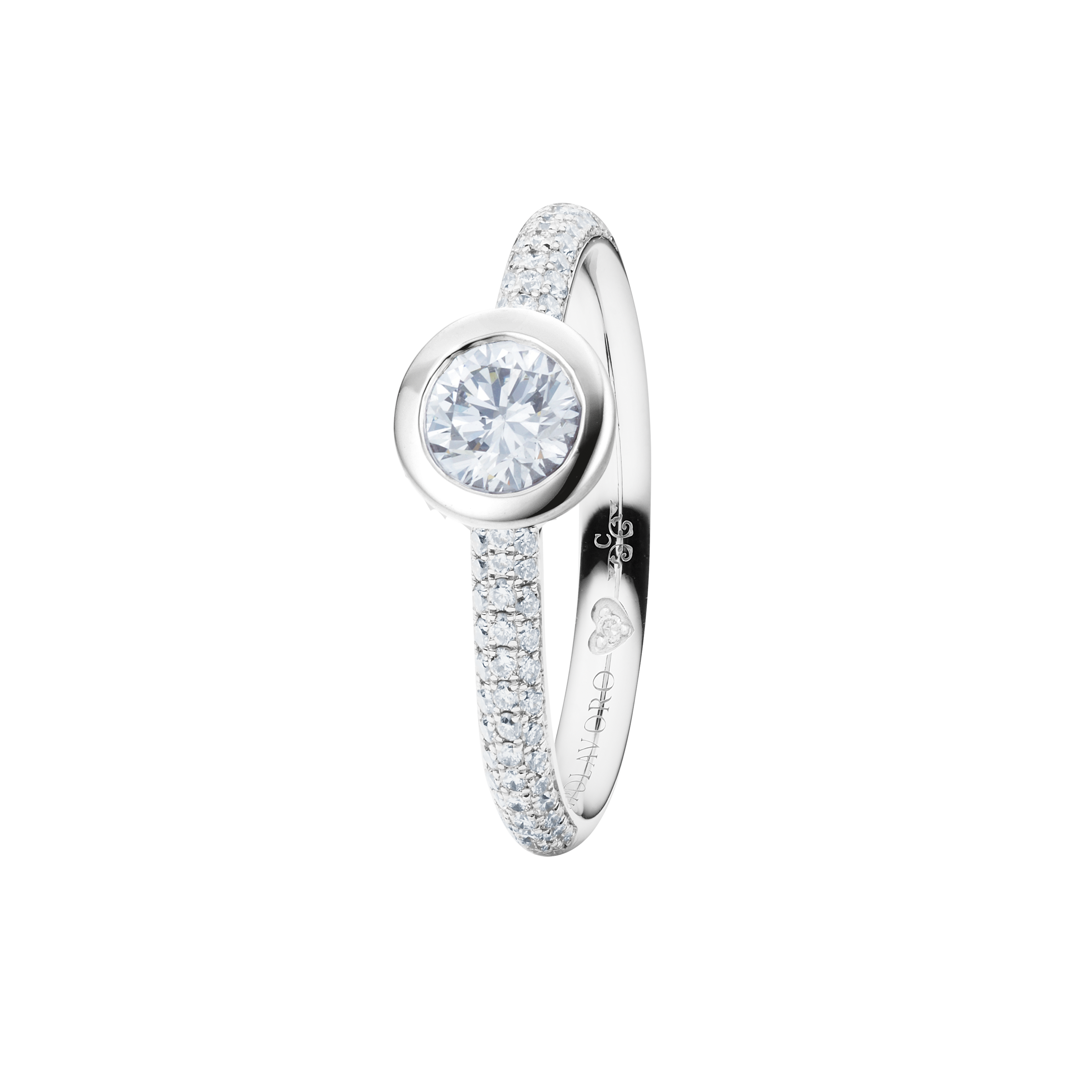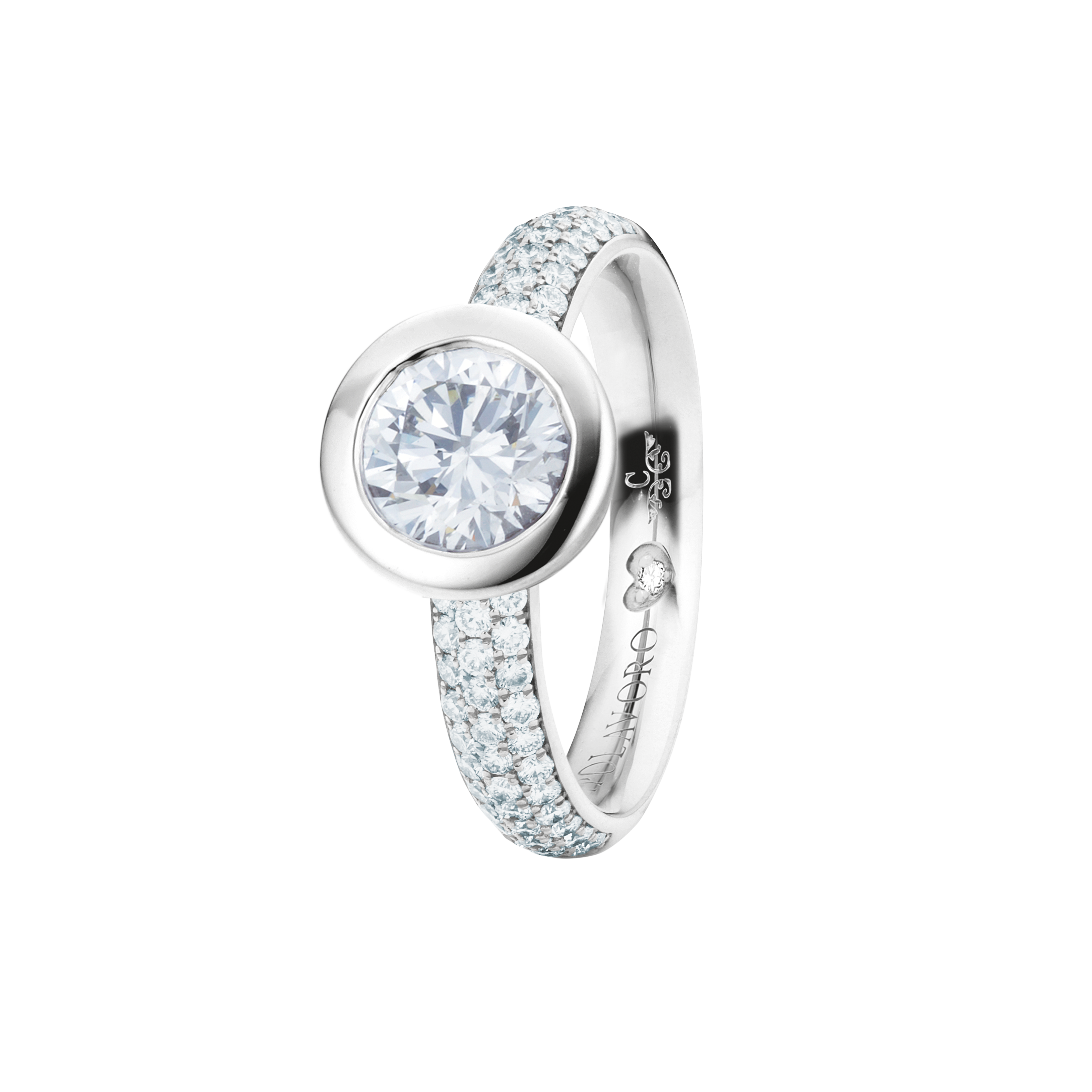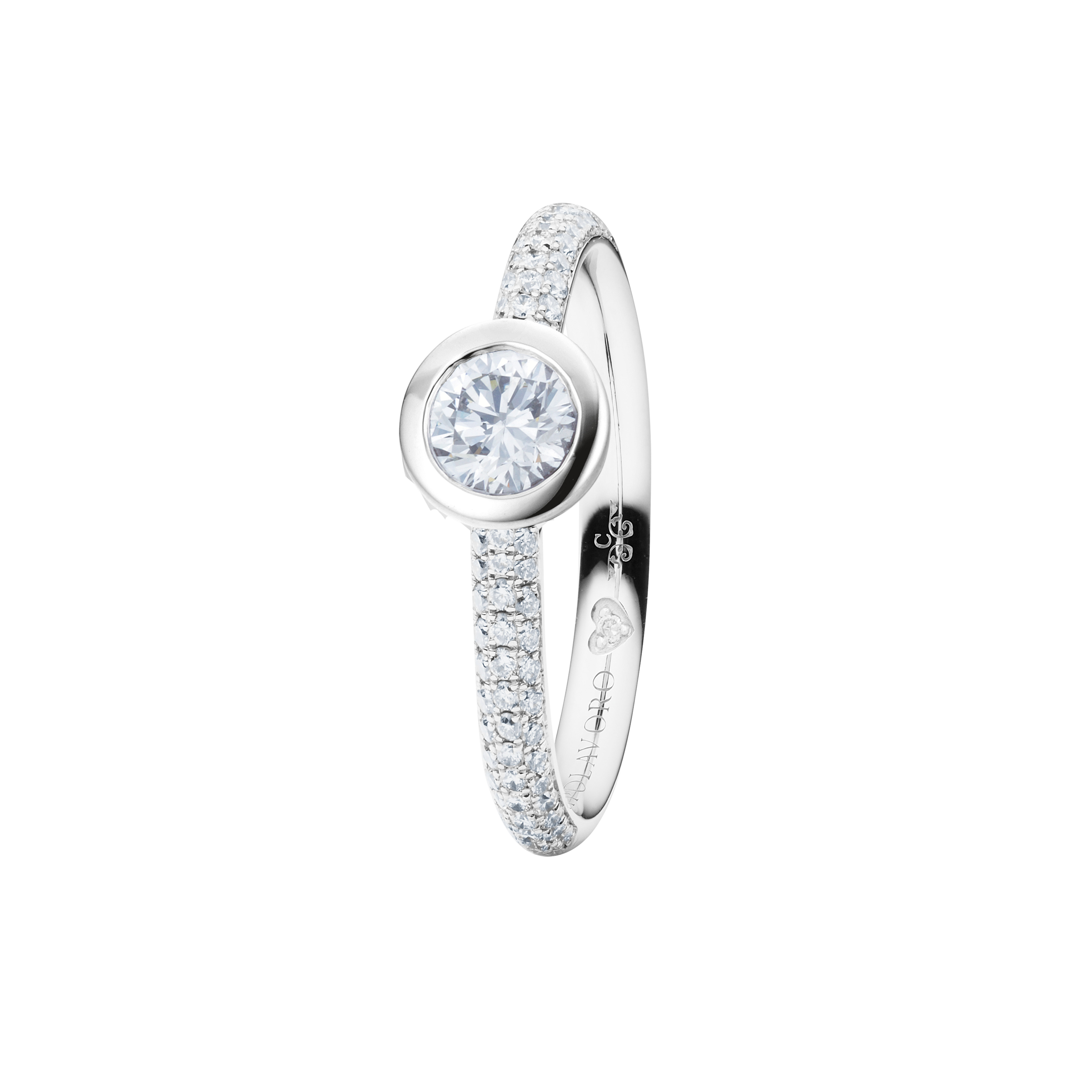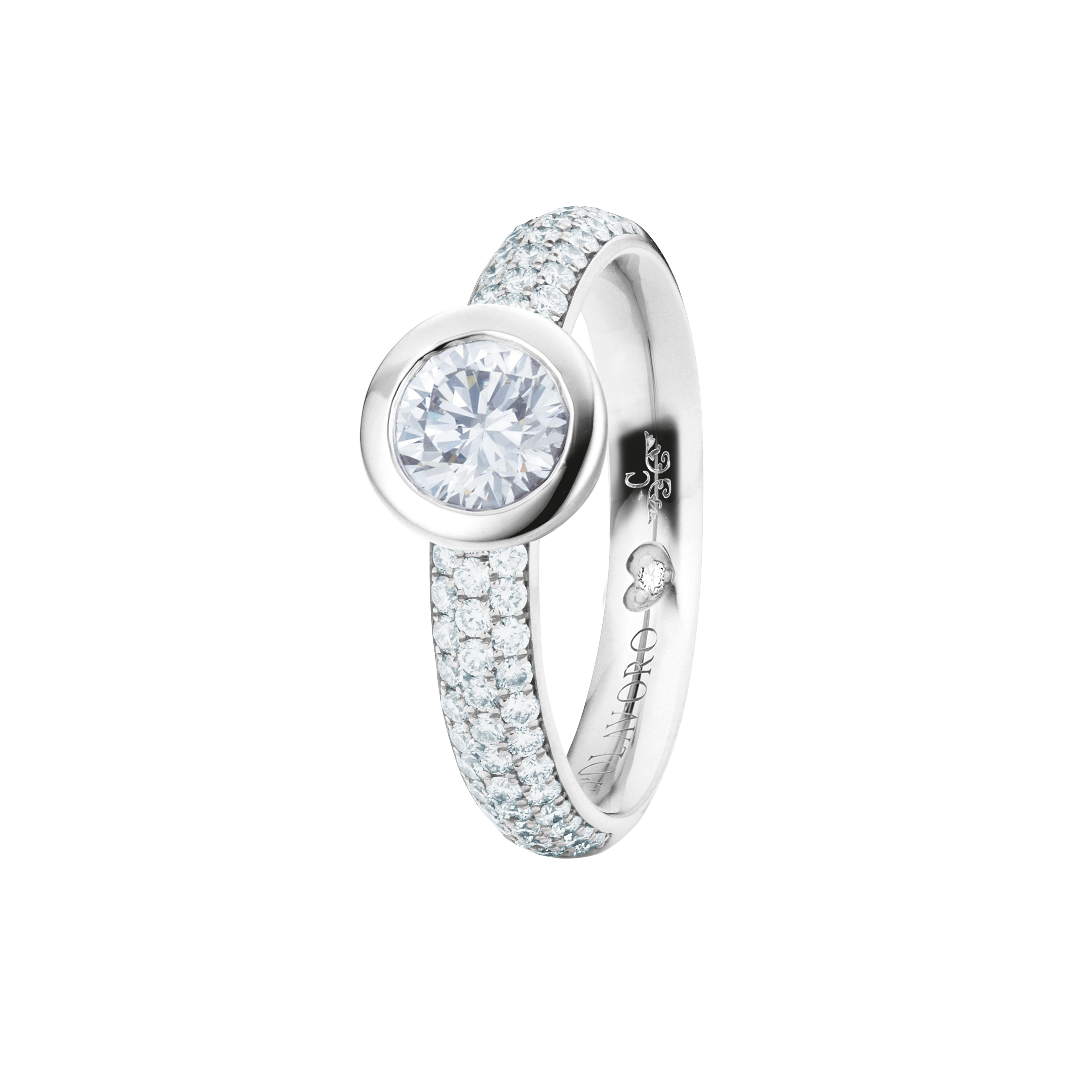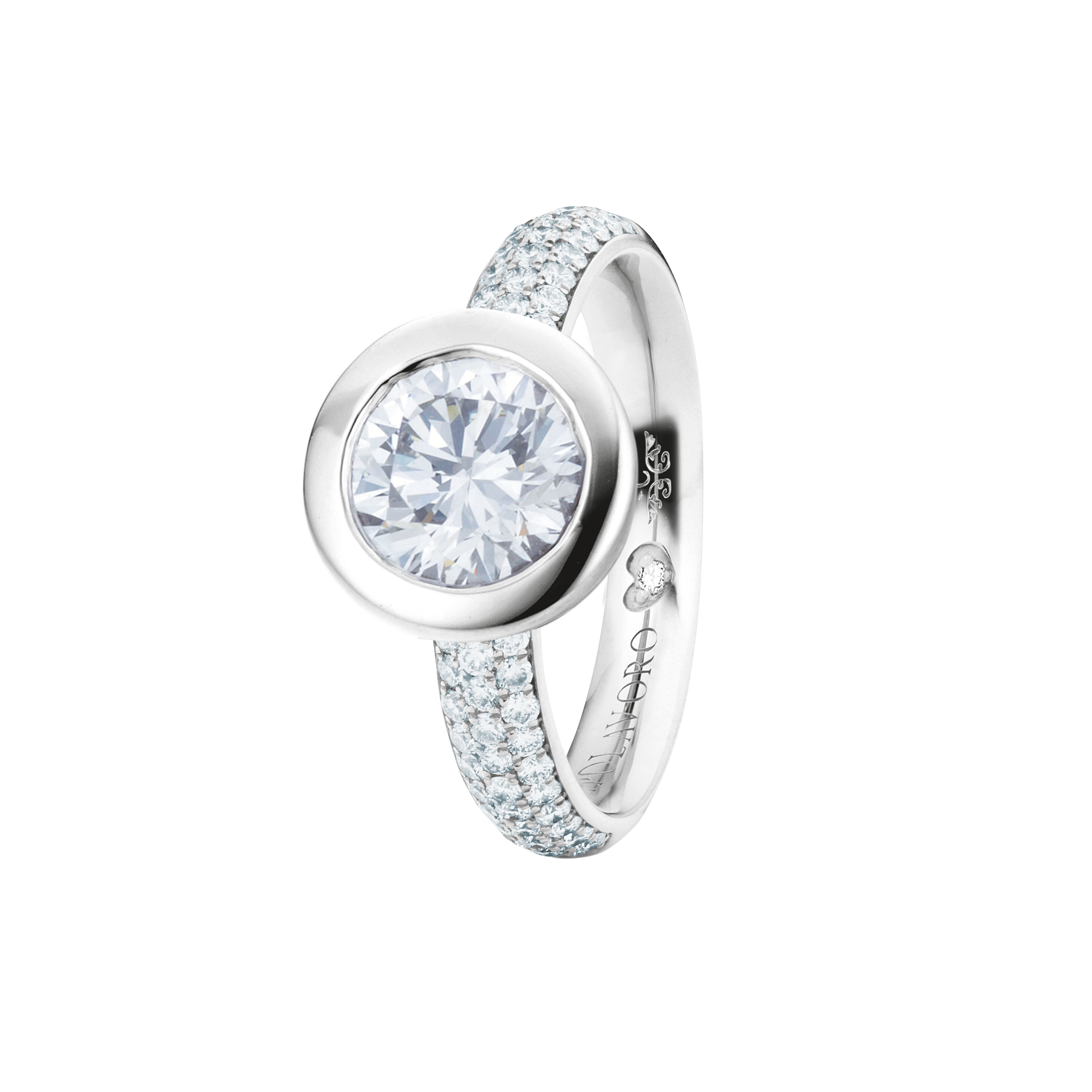 When designing the ring band of our rings from the Diamante in Amore line, we at CAPOLAVORO paid special attention to ensuring that these rings fit together harmoniously and seamlessly. This means you can combine your pieces of jewelry (e.g. wedding ring and eternity ring) as you wish and create a uniform and aesthetically pleasing ensemble.